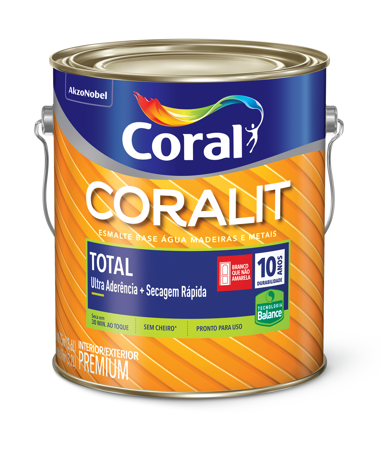 Coralit Total é um esmalte base água de ultra aderência em multisuperfícies, isto é, possui alto desempenho em madeiras, metais ferrosos, alumínio, galvanizados, PVC e também em repintura.