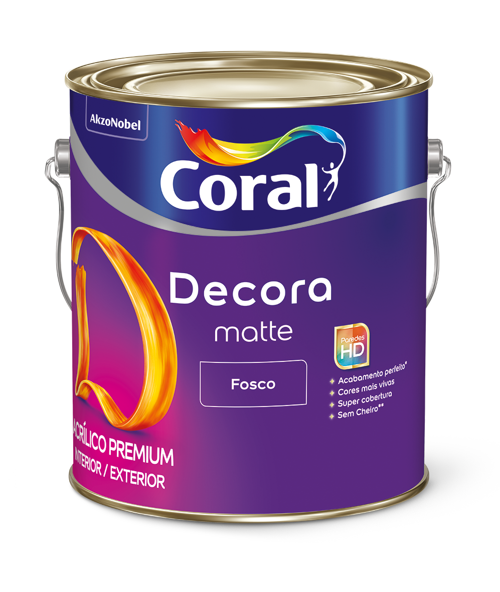 Decora MATTE é um Acrílico Premium Fosco com super cobertura que conta com a exclusiva tecnologia Paredes HD oferecendo cores mais vivas e um acabamento perfeito.