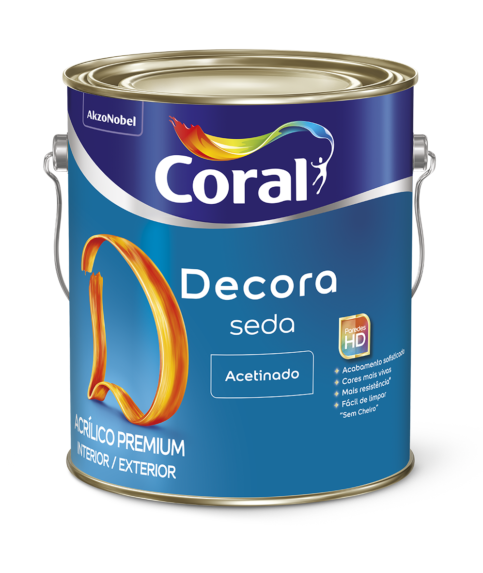 Decora SEDA é um Acrílico Premium Acetinado que conta com a exclusiva tecnologia Paredes HD oferecendo cores mais vivas e um acabamento sofisticado, além de ser resistente e fácil de limpar.