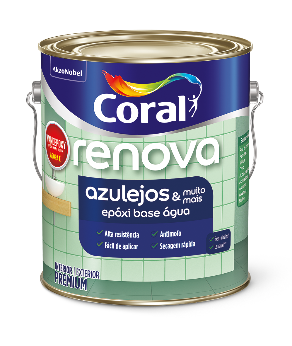 Renova Azulejos e Muito Mais é uma tinta epóxi a base água e de secagem rápida. Ela é fácil de aplicar, sem cheiro e possui proteção antimofo.