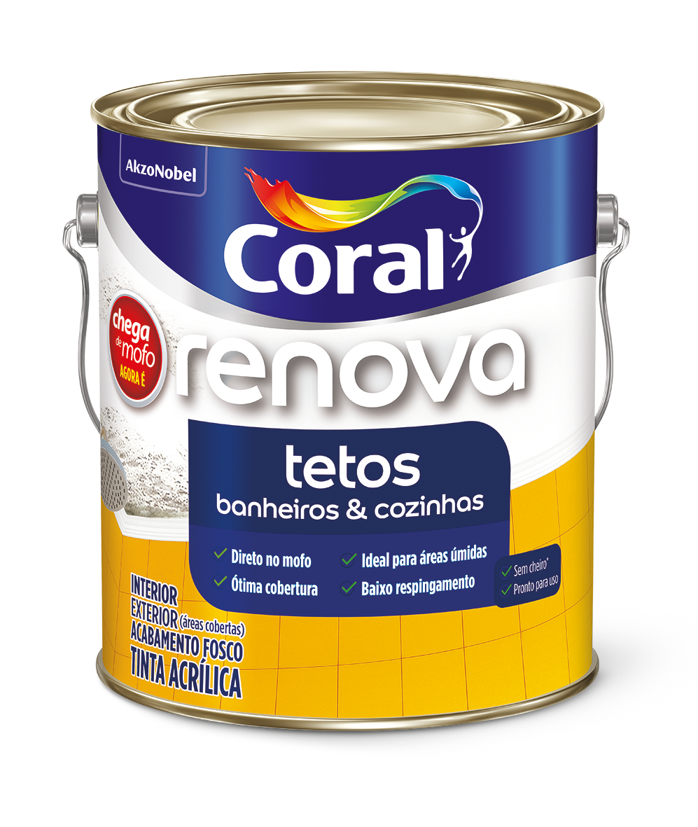 Renova Tetos é uma tinta acrílica de ótima cobertura que pode ser aplicada diretamente sobre o mofo, sem limpar antes. As paredes ficam livres do mofo por muito mais tempo.