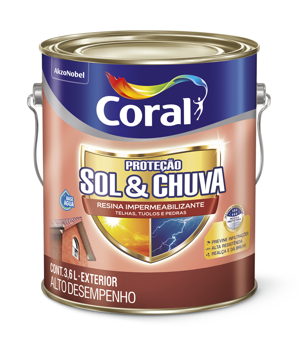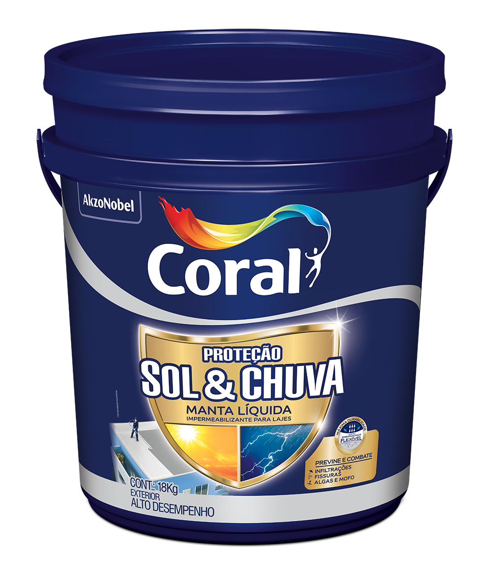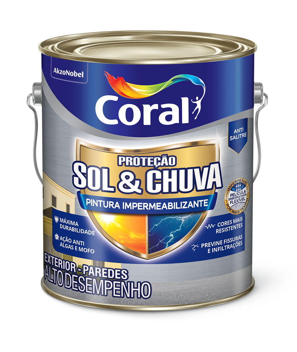 Proteção Sol & Chuva Pintura Impermeabilizante é a opção mais completa para pintar e proteger paredes externas, pois forma uma película emborrachada flexível que previne fissuras e infiltrações, combate algas & mofo, além de conferir máxima durabilidade e resistência a suas cores,