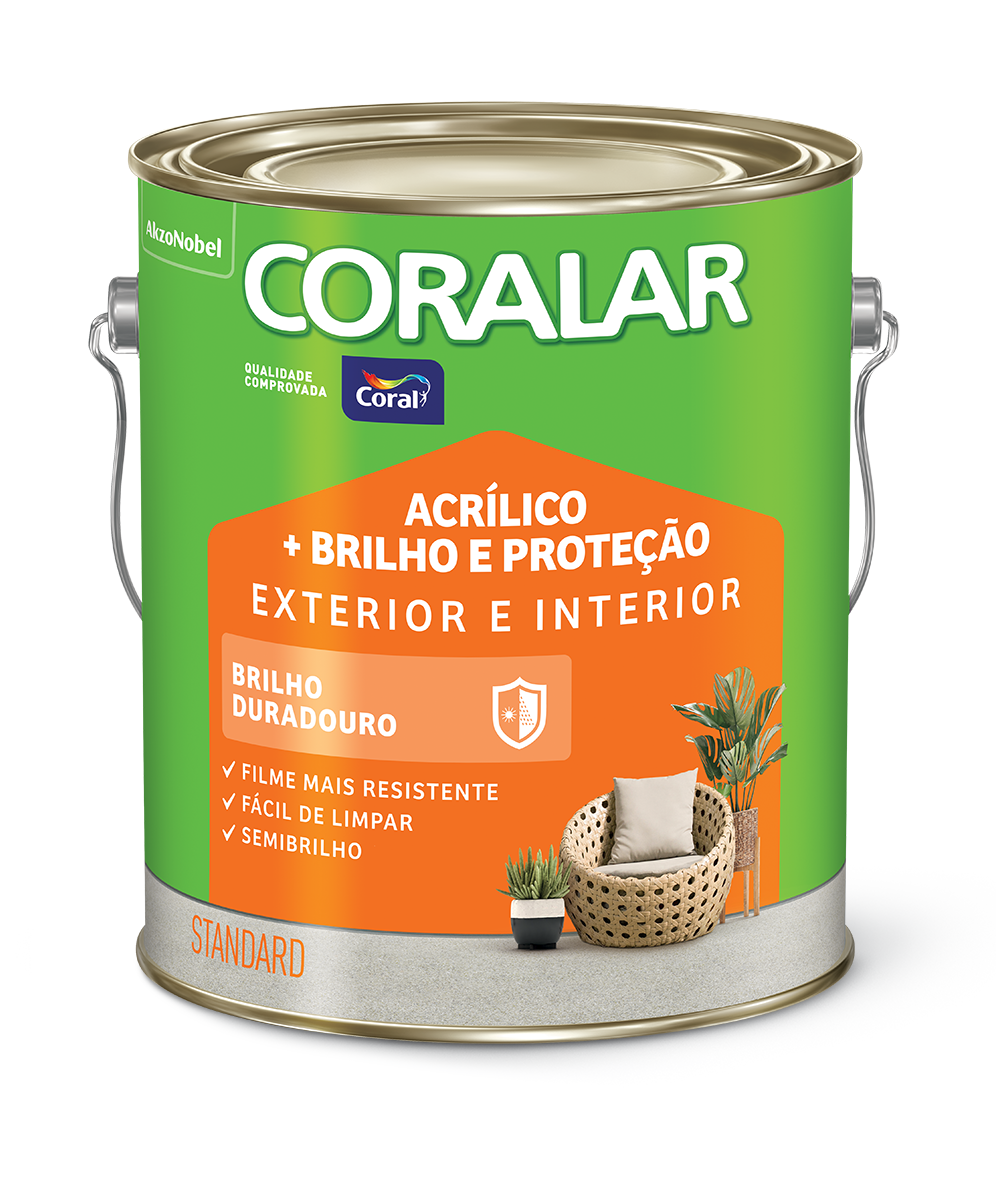 CORALAR ACRÍLICO + BRILHO E PROTEÇÃO é a tinta ideal para quem procura um toque de brilho, pois forma um filme protetor que confere maior