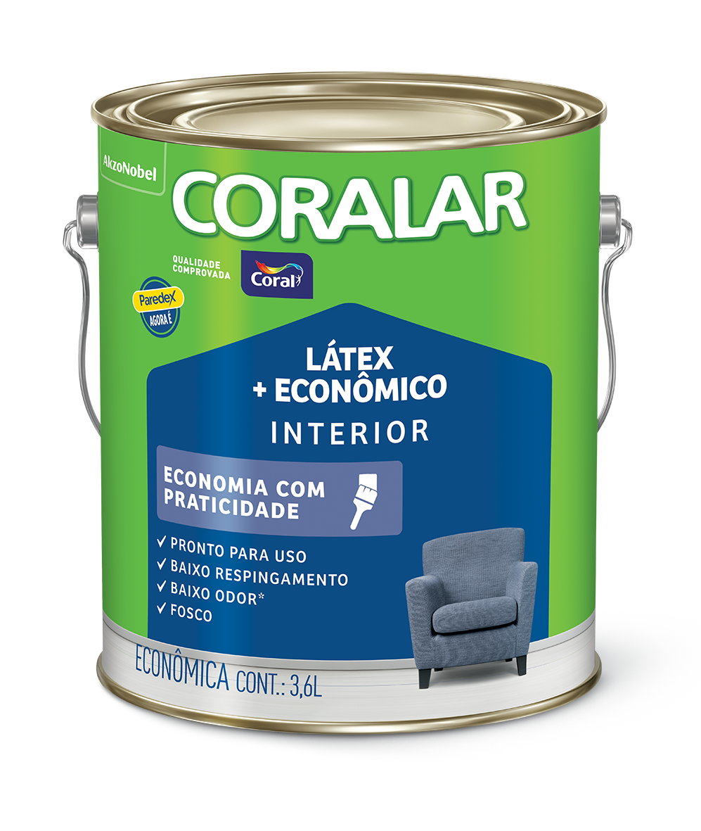 CORALAR LÁTEX + ECONÔMICO é a tinta para quem busca economia com praticidade. Vem pronto para uso, possui baixo respingamento e baixo odor.