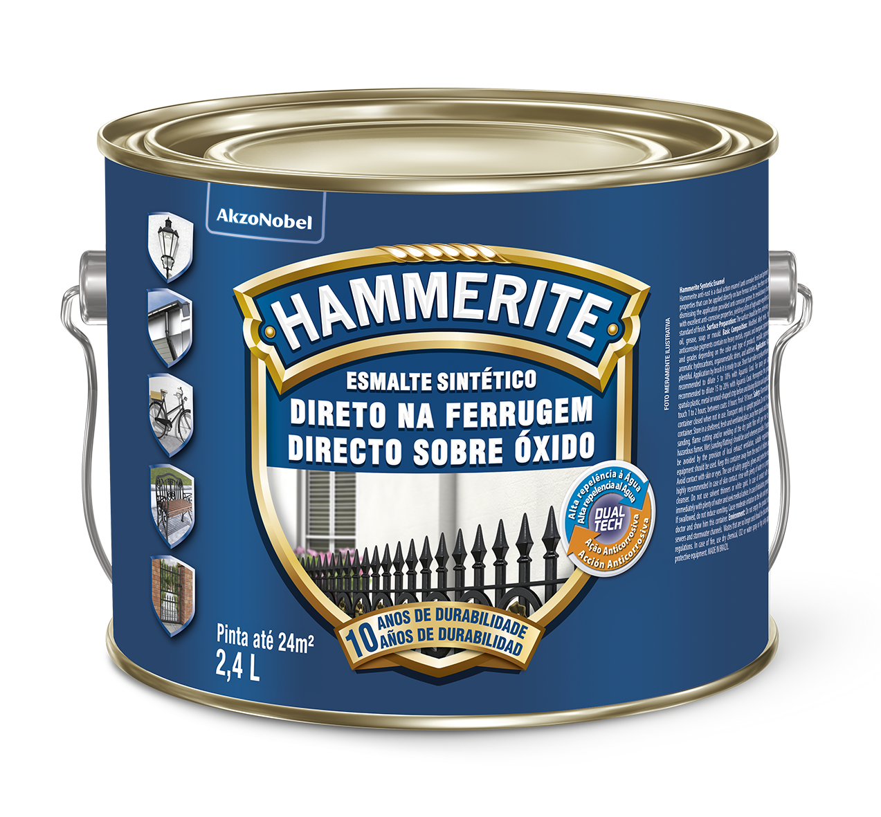 O Esmalte Sintético Hammerite Direto na Ferrugem é um esmalte antioxidante que se aplica diretamente sobre ferro limpo ou enferrujado.